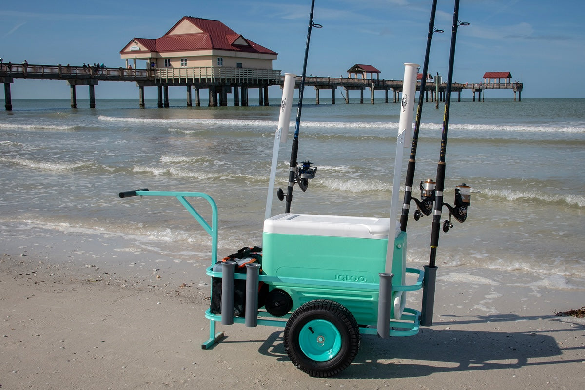 Whether you’re hitting the beach, park, or pier, the Pro Surf Cart makes hauling gear easy. Built to fit a 54 qt. cooler, its tough stainless steel frame and rubber wheels glide over sand, mud, gravel, or grass without breaking a sweat.